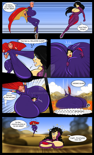 And the final commission render of the wonderful DA artist and a first for me. A comic with Firestorm members Chello and Genny GiMongous sparring and Chel showing Gen a new technique she's been working on.Suffice it to say, I wouldn't mind being part of the first stage of the attack.