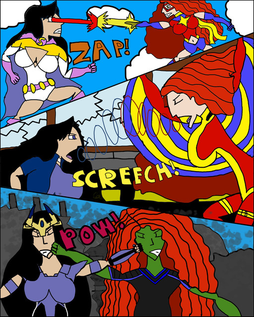 That was awesome--Chello has great control over her body and, Genny sure as heck didn't see that coming I'd love to see more of your girls sparring like that--it's a fun way to show off their different powers! By the way do you have any other characters on your roster who can do what Chello is doing here?