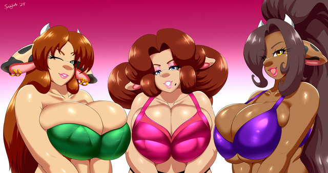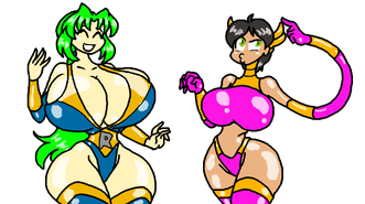 Tonya Twins, Bianca Bovines, and Genny GiMongous are members of the super team, Firestorms and are the sexy OC's of