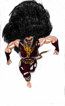 Sent back in time to the past of the planet, Crital Mer, Big Cat is the future evolution of the cat people known as the Roars.She can extend her claws like most of her race, but her claws have the ability to absorb tremendous amounts of energy either as radiation or her more preferred method the ambient energies of her opponents body. The extra force she takes in increases her physical power to super human levels. This allows her to leap several miles at a time, run at 300 m.p.h. , a hyper healing factor, resistal strength, incredible dexerity and reaction speed, and to gather centripicle force round her to transform into a rolling spear-like projectile(much like Ben 10's Cannonbolt) for combat. She can also track down energy signatures even off planet.