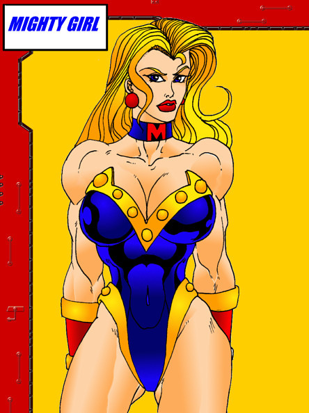 There's a lot of back story with this lady, but long story short Bustee is the cloned twin sister of the heroine Buxom who represents everything that Buxom tried to mentally hide or not admit to.Unlike her sister, Bustee dosen't need to regulate energy through her chest plate. Her whole body can absorb any type and amount of energy allowing her to fire devastating blasts from her hands, eyes and body. She can fly, has 80+ strength, and can track energy sources. She also has a mental rapport with her love Ado-Titan and best friend Boomranger(will introduce later).