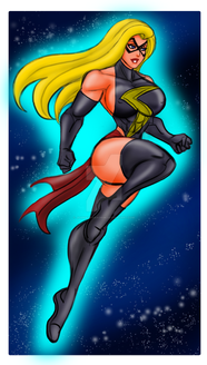 One of many fan arts to post, this one with Marvel Comics own Ms. Marvel. I've always loved her blue/black and lighting strike suit so that's the one I went with.Ms. Marvel is a character from Marvel Comics.
