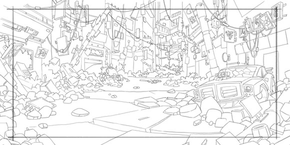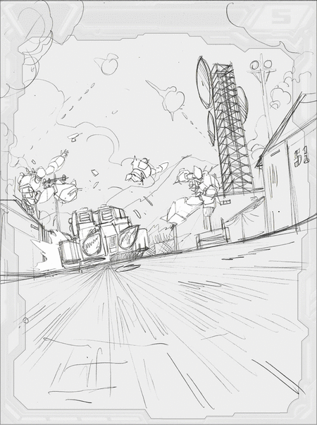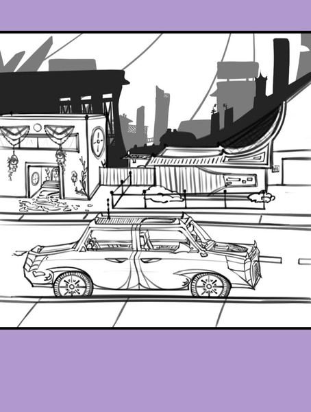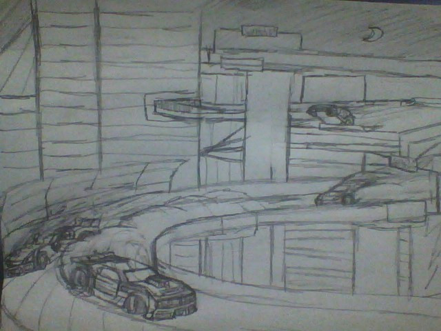 Edit: 11/26/17 - Beginning to tidy up and fix a few of the initial sketches for the road and background stuff. Added 2 additional cars in the image too. Might add one more if ever I finish the custom of that car soon. Mountain side building has been touched up with the basic details. Will proceed to do the middle area once the Mountain side area is done.