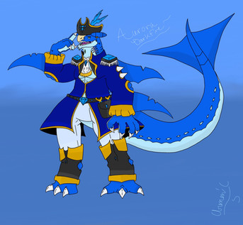Como dice el titulo, hice un Digimon OC basado en el Leviamon (mutante)Siempre me imaginé como se vería mi Demon Lord favorito sobre sus 2 patas traseras y con menos hocico jsjs esto es lo que vino en mente. Además de que siempre quise hacer algo con la estética pirata yohoho.