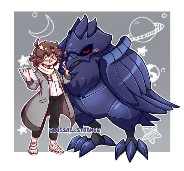 Nixenergy and Galarian Articuno.They are very similar so I decided to draw them together. They are both puerple, grumpy, elegant and ice is their weapon