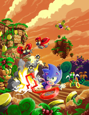 Hehe they're using the bug badniks for vehacals. Nice pic. The background gives it a major Sonic CD look.