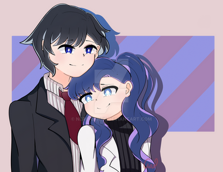 [ESP] Fanart de Loid x Yor. En paleta cromática y headshot debido a que me encuentro en la casa de mi padre, con mi antigua tableta y en un escritorio muy pequeño, dibujar aquí es muy difícil sin sufrir dolor de espalda. Estaré aquí hasta el martes así que seguramente haré los dibujos más sencillos estos días.