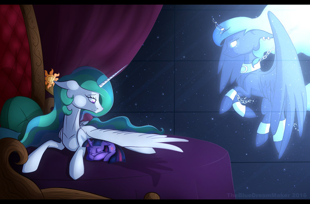 I love this picture, and I've used it as my background for weeks now, but the one thing that's always looked off to me is the position of Luna's horn. If you follow its lines down through her mane, it looks as if her horn would be placed directly on top of her head. It would be completely vertical if she lifted her chin up. :/