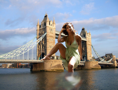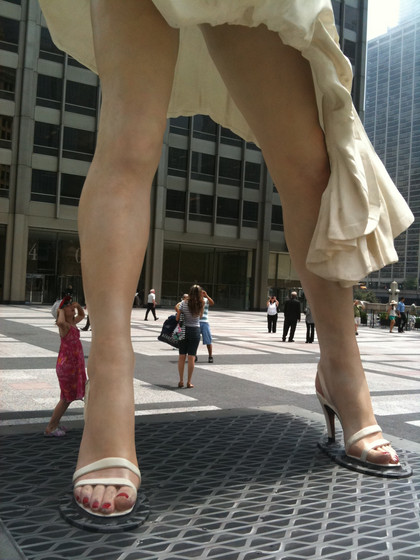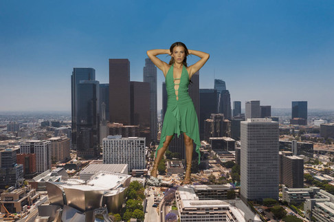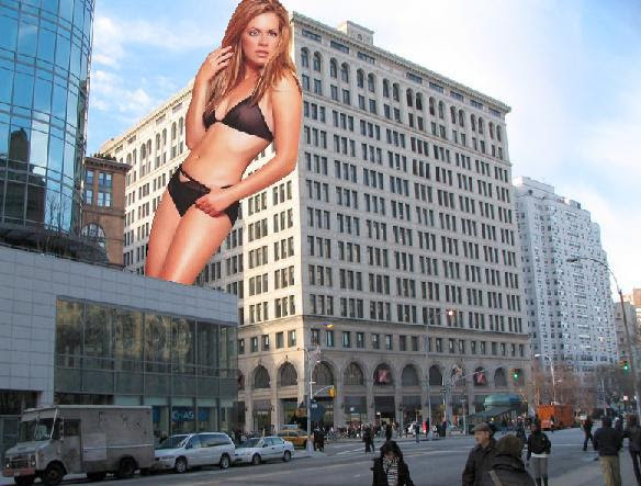 She sure does. She is a Brazilian Model, but I forgot her name.