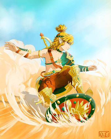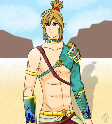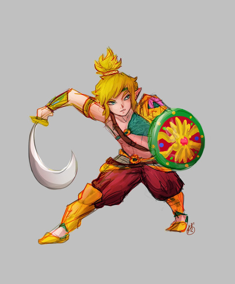 Tai was initially created as a Zelda OC, so sometimes I like to go back to that and draw him interacting with other characters. In this case, he is training with Riju, who is more or less the same age.