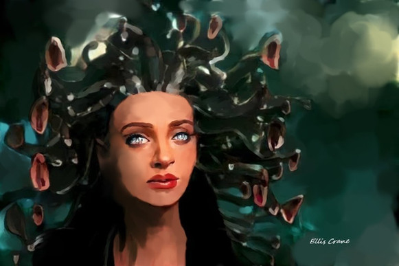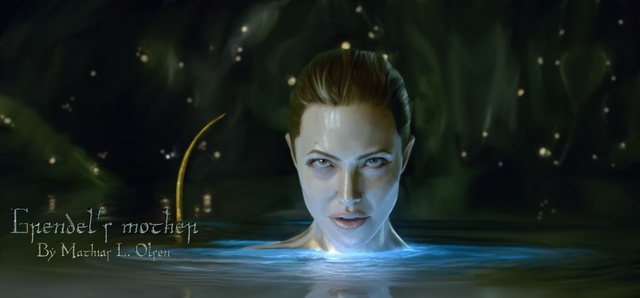 Angelina Jolie as Grendel's mother, Grendles mΕdor, in the 2007 animated movie Beowulf, of course based on the work of Old English literature of anonymous authorship of the same title.Anyway, I recoloured that movie still because I wanted her to look a little bit more devilish than she was in the film...