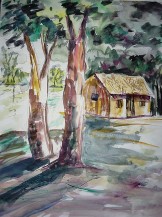 Landscape in mixed media (watercolor with pastels addition). Decided to try new watercolor paper. Well... I was definitely not prepared for such speed of water absorption. Everything had to be saved with pastels. The rescue itself was not completely successful)