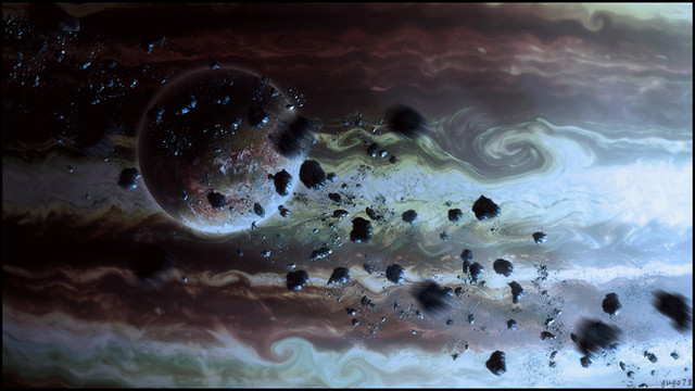 Excellent work. Very dramatic, sad, depressive even at a slight bit, the singularity attracts the planet smashed into each other?