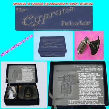 The Cyprane Inhaler was introduced in 1949 and was widely used for portable general anesthesia. You've probably seen one of these Cyprane Inhalers used by Mistress Anna List in one of her superbly sexy videos and also in the S6, E32 episode Take Over, of The Avengers 1960's TV show with Tara King (Linda Thorson) where Tara's being gassed with the Cyprane Mask by Nurse Elizabeth Sellars. Nurse: "A few deep breaths of this and you'll know nothing about anything!" (Hissing anesthesia gas sound as the Cyprane Mask is placed over Tara's mouth and nose)Tara King: "Mmpohmmohh!" (sigh)