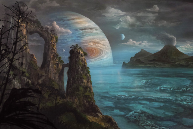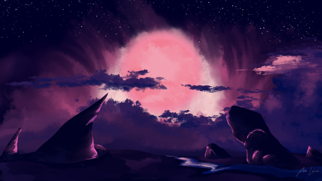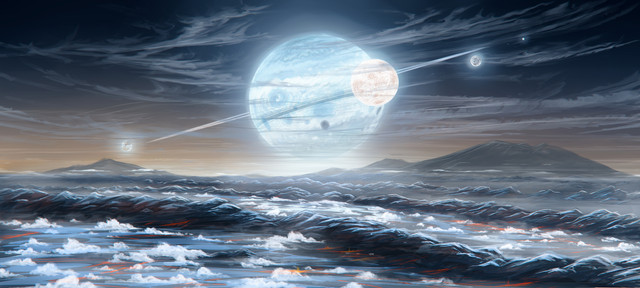 What a pretty scene! Having a planet or such so close would really light up the night sky!