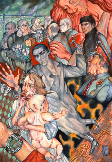 This is my contribution to a book called "9 questions" (9 preguntas), to be published in Spain jointly by two publishers, Dibbuks and Sins Entido. About 30 artists are participating in the project, each one of us answering 9 personal questions on a page with 9 illustrations.1- What is your favorite vice?