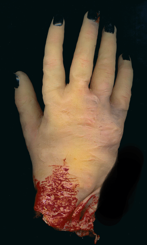 Holy smokes, that is amazing... If it hadn't said 'prop hand' I would have thought it was a crime scene photo. Incredible.