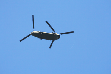 It's a US military transport helicopter.. The dual rotor Chinook. Mmhm, that's the way things should be dropped onto the battlefield.