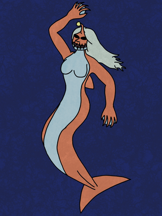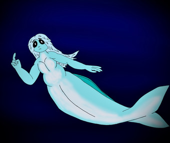 A redesign of one of the mermaids I drew for Mermay.Blue is a very big and very old blue whale who lives deep in the ocean only surfacing to breathe and greet any boats lucky enough to find themselves in her waters. She tends to follow these boats and guide them through what can often be a dangerous voyage. This has led to many legends about her, claiming her to be a sea goddess.