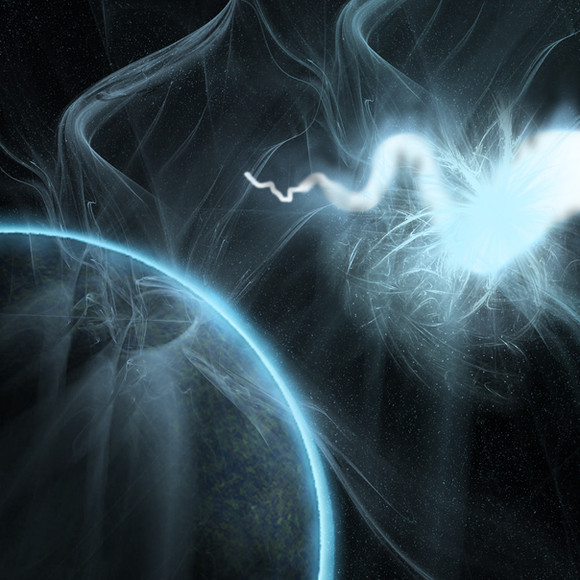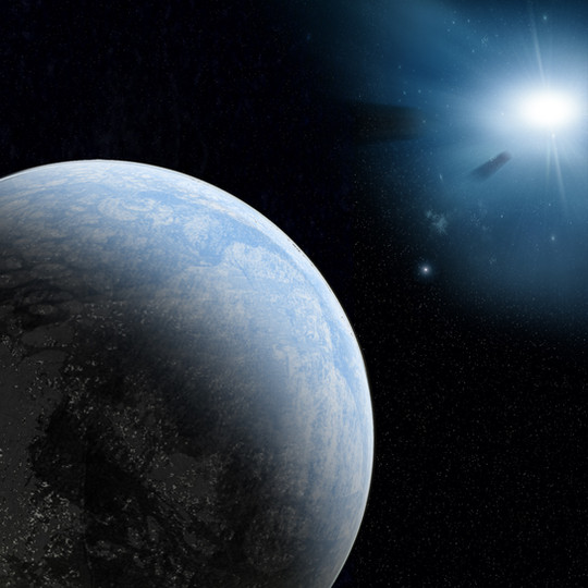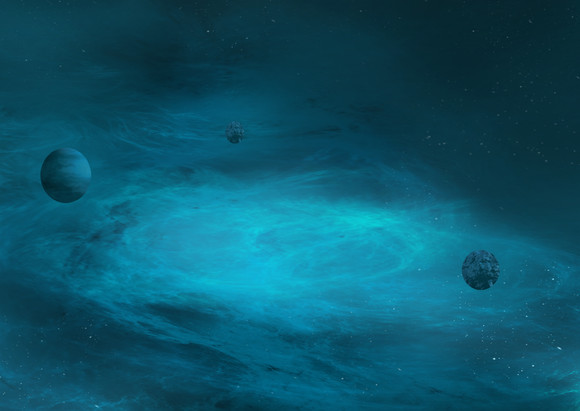 The composition is off. You should get rid of the planet on the top from there make the moon on the bottom bigger. There are no stars where the nebula is? The should be some subtle stars there.