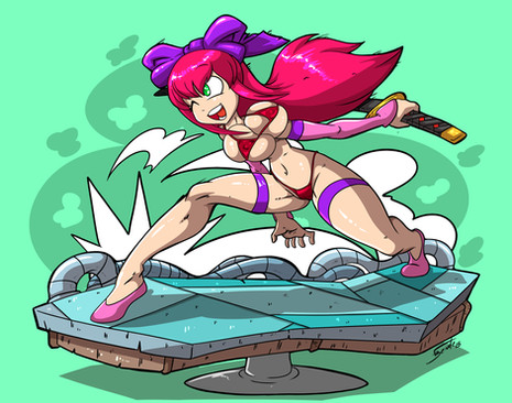 one pair of breasts I do not want to get in between. This art looks pretty damn slick, but you already have a gattling gun wielding robot.