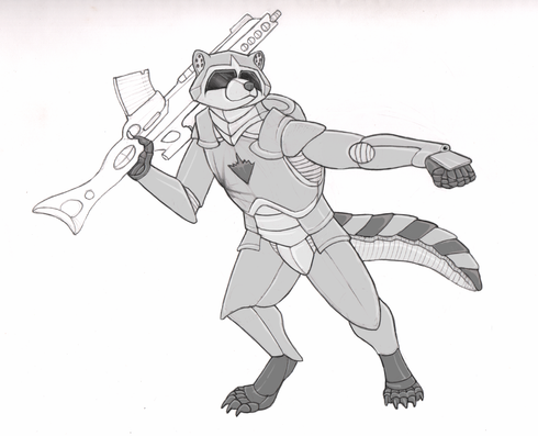 Here's a little sketch of my own version of Rocket raccoon. I love this crazy little guy.