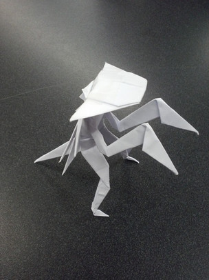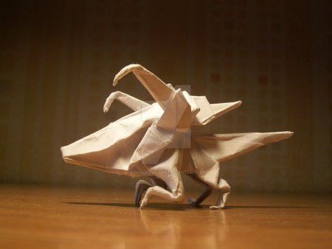 I was looking in your gallery for more diagrams like the Sitting Fox, and found this. Once the image loaded I stared at it for maybe ten to fifteen seconds going "ah... a buh... how?" This is simply amazing. You've probably gotten many other comments on it to this effect, but it doesn't look like origami - that is, it doesn't look like it would be possible with just paper folding (especially just one square!). It looks more like an intricate clay sculpture, or something similar made with thin layers of stuck paper. It's almost instantly recognizable, has amazing details (the face! The individual fingers!), and bears a definite aura of power and menace. You even managed to give it all its (his?) tails! The only thing I see that I think of as less than perfect here is the feet: I didn't even notice them at first, but once I did, the little stump-feet took a little bit away from the model's effect. I'm not sure it would be possible to give it better feet, but if you could, that would be the one change I would recommend.