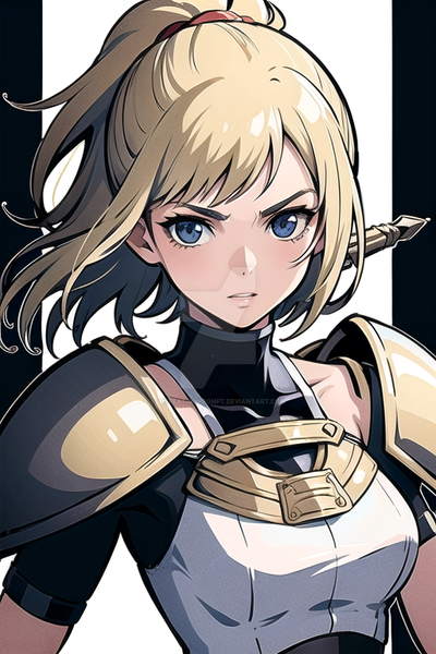 #ai #anime #armor #beautiful #beautifulgirl #blonde #girl #gold #mediumhair #portrait #princess #serius #yellow #goldarmor #buymeacoffee #buyaiart