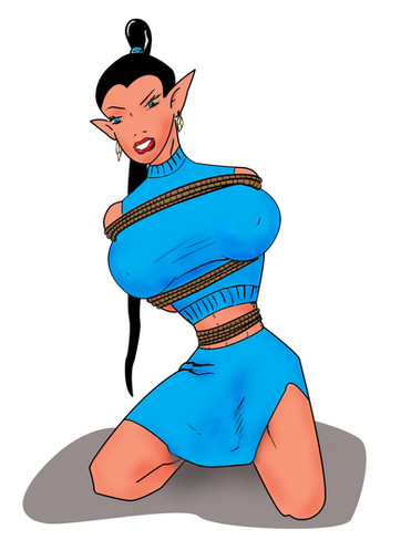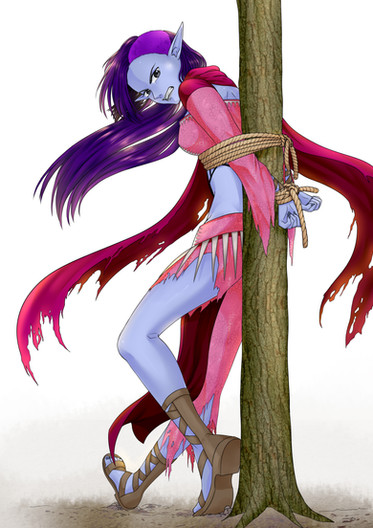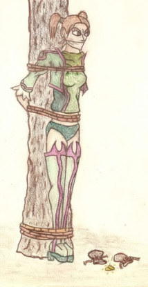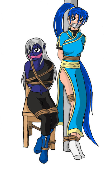 That gag is tied pretty tight around her mouth! Hope it doesn't hurt `er~ :3