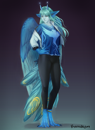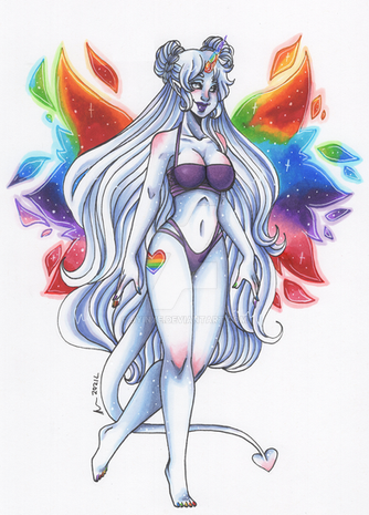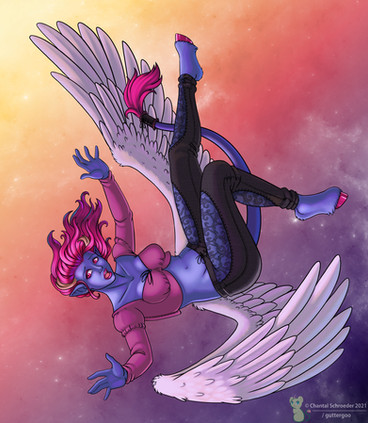 #commission #fullbody #horns #oc #tail #winged #wings #original_character #pink_hair #blue_skin #digital_commission #fullbody_commission