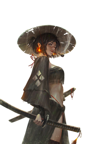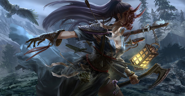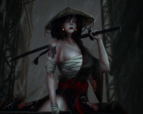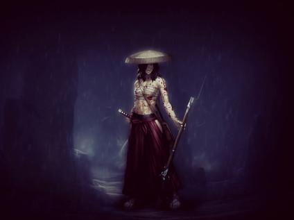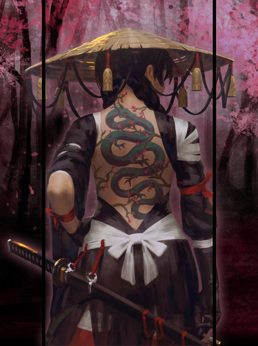 I could be wrong but I feel this is more Japanese based on the sword alone.Β These swords, there are a few different types and names but I will just go with Katana, are normally found and associated with Japan.Β Although China and Japan do have some cultural similarities, Chinese swords, swords that normally associated with Chinese culture, such as the Dao or Jian, are different in that have a different hilt and sheath.Β But that is the opinion of a Amateur.