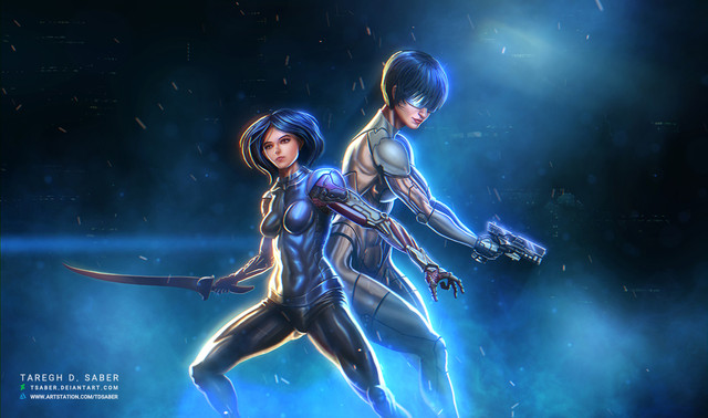 Wow, this is very well done! The composition turned out great, and I like your rendition of Major. It strikes a perfect balance between the more realistic look of the live-action film and her appearance in the original move with just a hint of her Stand Alone Complex attitude.