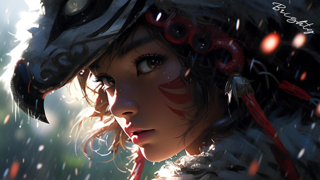 I think I see a balance of culture here. The rough necklace of wolves teeth(?) with the slim silver head chain and tiny, but ornate, charm. Head chain = coronet? Seems she is participating in a coming-of-age event...that might have gone terribly wrong. Face paint = tribal markings? She may have been found by a tribal people and they took her in. Then there's the facial expression...flat, emotionless. Like she's looking at an object or location that is vaguely familiar.