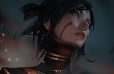 The strokes, the environment, the illusion of wind, plus her expression makes her see through the viewer. She is calm in cool colors while her surroundings are brighter than her in warmer hues. Great contrast and profound characterization. You can tell many things about her just by looking at her face. This is very tough to accomplish.Β