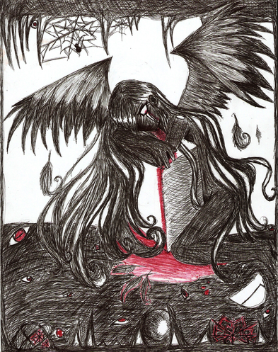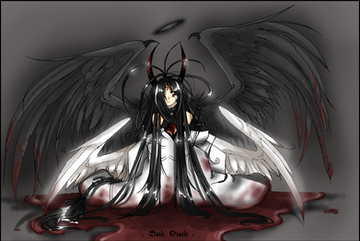 I know this took me forever! But here it is my rp character, Kida, transformed to suit the darkness. I had come up with the idea when I was depressed a while back. She's sinking, being dragged into the darkness, struggling to reach for the light of Heaven she once knew.This piece will be entered into an artshow this month, yea! First time I've entered my work for anything o_o;
