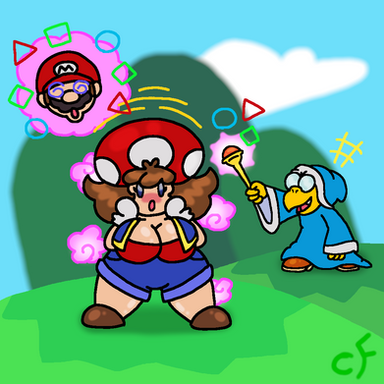 Yowsa, I haven't added anything to my gallery in over a year. Damn I'm bad at this. Β The good news is I've invested in a new Pen Tablet for my PC, an Artisul d13. Its not as fancy as the higher end Wacoms, but I got it for a good price and seems to work as advertised. I put this image together to test it out. I think things went pretty good. Sloppy colors, but those were more to spice it up a bit.As we can see Mushroom Kingdom Power-Up transformations are starting to spread to more members of the Mario cast. Where might it end? And who is responsib.... it's Bowser.