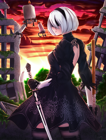 これは私の去年の最後のコミッションの一つであり、アニメ放送予定の可憐な2Bちゃん(ニーアオートマタから)を描くことができて大変嬉しいです❤