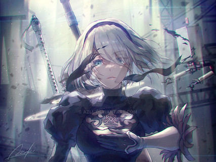 #2b #commission #digitaldrawing #greyhair #ruinedbuilding #swordswoman #animemangagirl #nier_automata #nierautomata2b