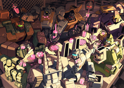 That is pretty cool. Nice to see the Decepticons loosen up and party for once. Although...How are Soundwave and Shockwave gonna eat or drink any of those energon goodies? O_o