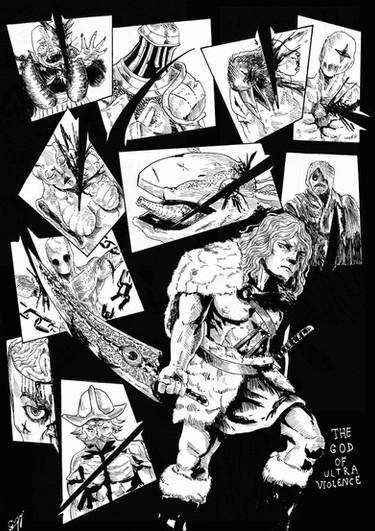 ten days later a single alchemist returned from the swamps, missing an ear, some teeth, and two fingers. four days later he began speaking again, and told the horrified townsfolk about how the ogre used the strongest door they had built as a shield, mocking them, how he killed the horses so they couldn't escape, how the two sorcerers and the warriors tried to fight it, and even after opening a gaping hole in the monster's belly, it made no difference, how the next day the ogre was wearing their skin, and a horse's intestines as a belt. How the survivors were forced to stay in the settlement like cattle, being used as a source of resources to the beast's occult rituals, sometimes the ogre wanted a nail, sometimes an eye, a finger, a tooth, a heart. As a last ditch effort, they drenched the thing in oil and set fire to it so they had enough time to run away. It wasn't enough for the other three people, but it was for the one that was telling the story.