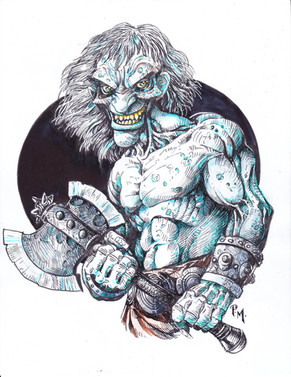 #axe #blue #creature #darkfantasy #drawing #fantasy #monster #ogre #skull #traditionalart #watercolor