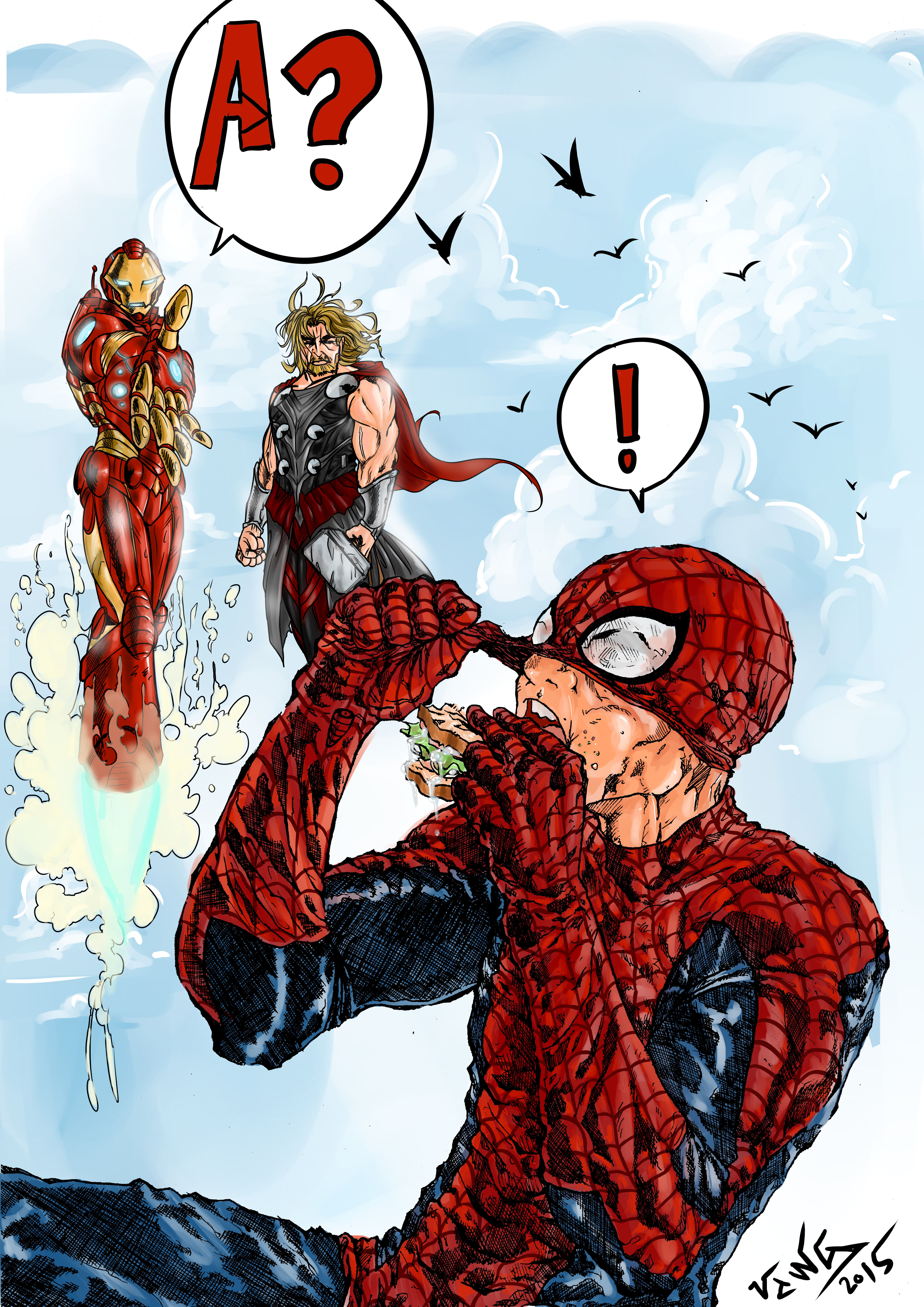 #superhero #crimefighter #digitalpainting #lunch #marvelfanart #peterparker #spiderman #spidermanfanart #comicbookfanart #traditionallineart #kritaartwork
