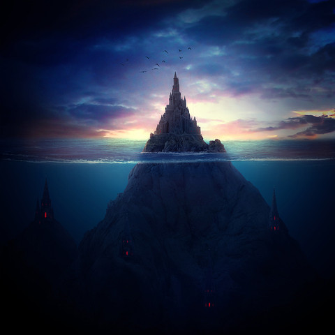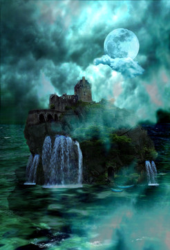 #birds #castle #dark #dusk #evil #fantasy #horror #island #mysterious #night #ocean #ruins #sea #sky #spooky #twilight #waves
