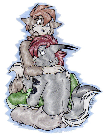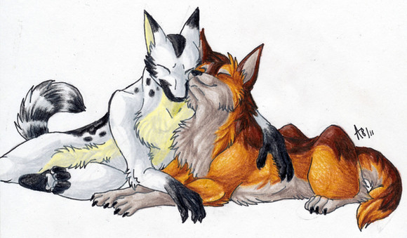 a feral and an anthro cuddling ^^