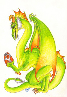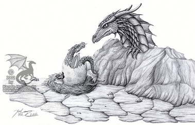 A mother dragon carefully watches over her nest as her most recent clutch of eggs hatches, ready to assist any of her children should they have any difficulty hatching.This drawing was done for my independent study art class, and I spent every available amount of time in that class for all of September and the beginning of October working on it. I'm very proud of this drawing and like it quite a lot, but I did a shoddy job piecing together the four scans that make up this version of the image. I'm going to try to get a photo of it that will hopefully be of better quality than these four scans.
