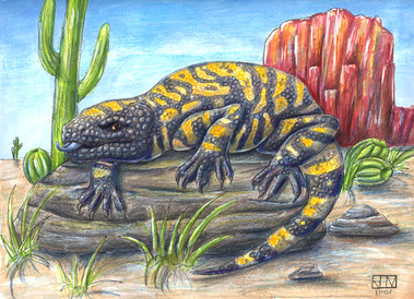 It's colored almost entirely with Tria and Prismacolor markers with a bit of white gel pen for scale highlights, and inked with various sizes of Micron pens.