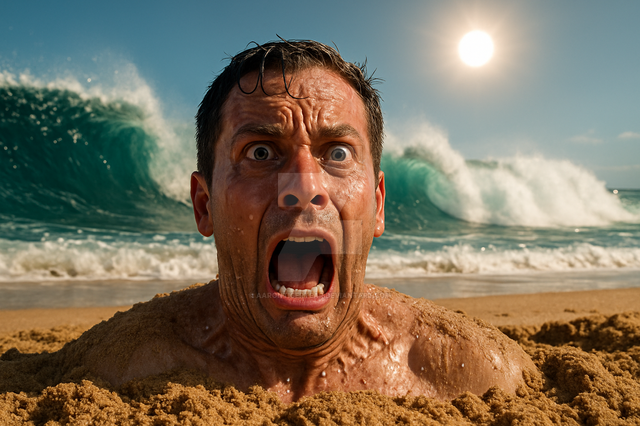 Once there, we did some test shots without digging the sand, and after a few tries, we started using our shovels! At this point, walkers' faces became funny. But that was nothing compared to when I undressed myself, got down in the hole with the cap and glasses