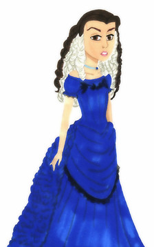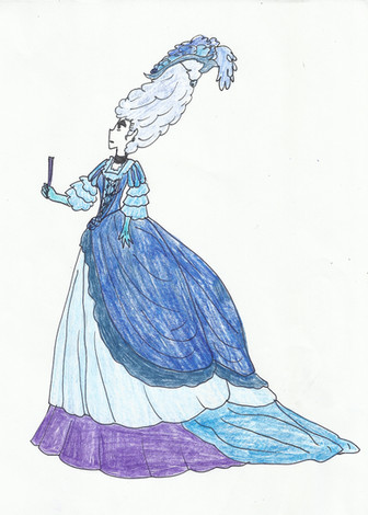 In this drawing Rarity looks as a girl in the middle of the 18th century:a dress with Watto's folds and a low hairstyle.