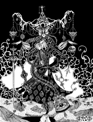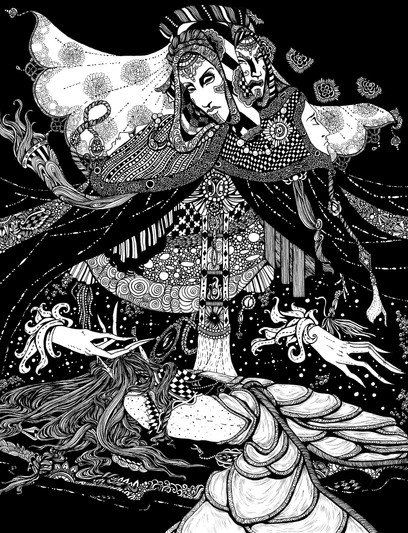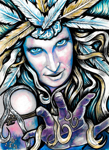 #ink #fantasyillustration #mixedmedia #oracle #wood