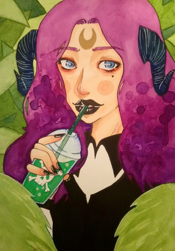 This is a drawing I started a while ago forΒ AcaciathornI immediately loved Nima, who is kind of the opposite of things I usually feel myself gravitating towards. Since it was character I don't usually draw I tried out a few other new things, some of them worked, some didn't but I had a lot of fun in the process. She looks quite different in this version but I wanted to draw her in a different style and hope I still captured her personality (?)